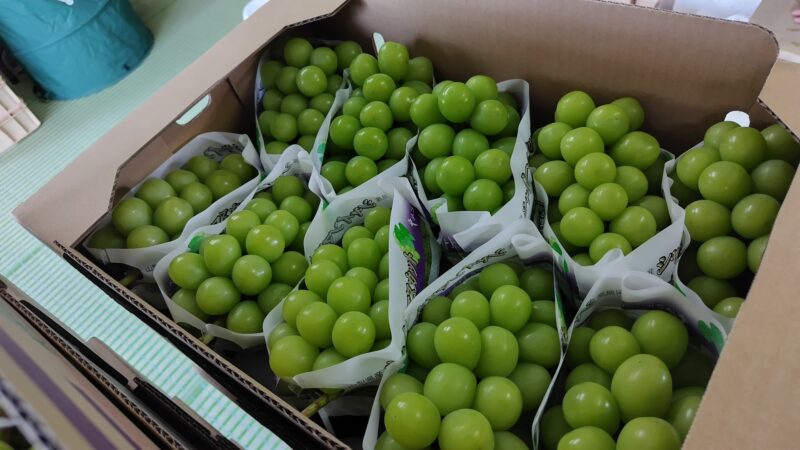 今年は、赤黒の色入りは良かったのに対し、シャインの玉張りが良くなく房の重量が少なく、結果、収穫量が減少しました。