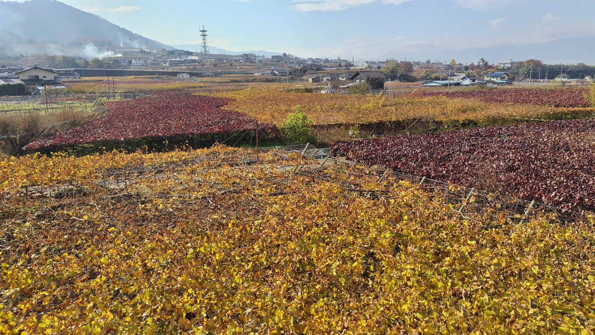 葉っぱ落ちて剪定が始まるまで、ぶどうの樹に藁を巻いたり、落ち葉を燃やしたり、のんびりと畑の冬支度をしています。