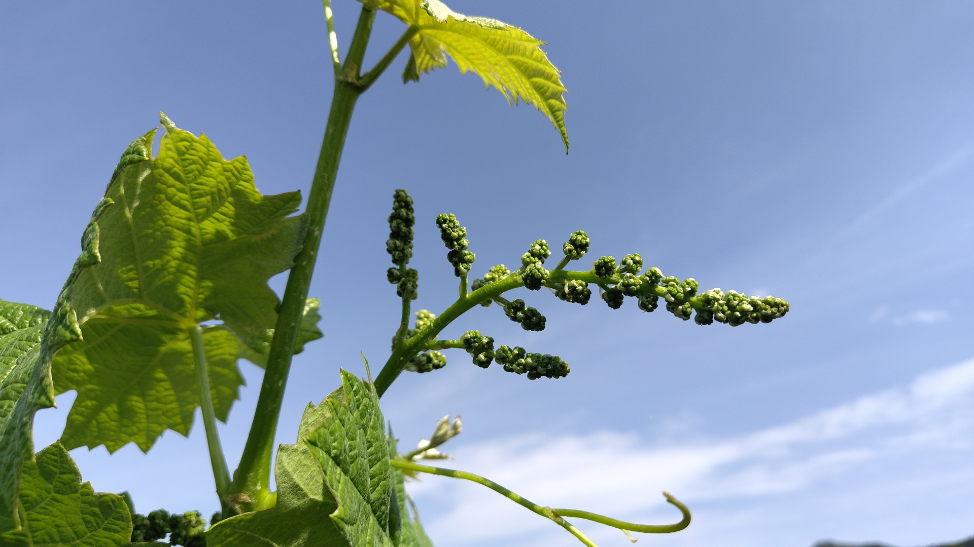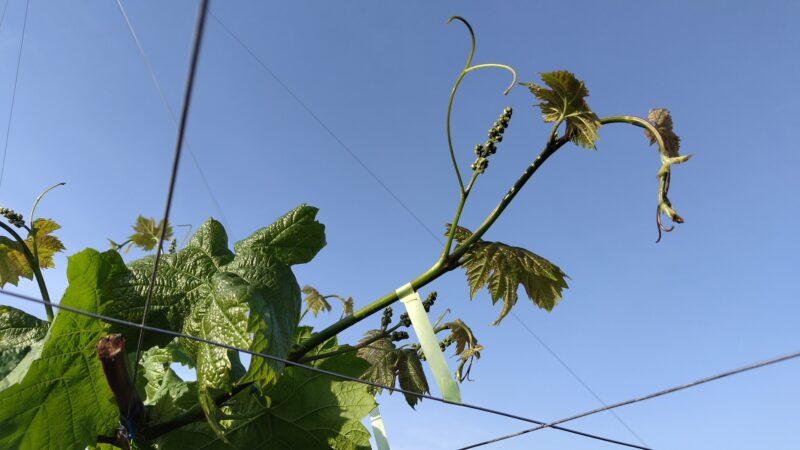日々成長が進み、平均して展葉4~6枚になり、ぶどうの房もそれらしい形になってきました、